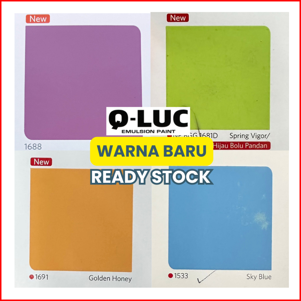 1505 white, 1519 black, 1503 blue white, 1524 fresh green, 1546 lime green, 1558 baby baby, 1559 lilac dream, 1154 hijau telor, 1657 bright green, 1552 pink posy, 1553 lavender print, 1534 marina, 1671 moon glow, 1540 freeway, 1562 candy pink, 1555 peace blue, 1547 swimming blue, 1541 atlantic, 1523 victoria, 1554 happy fuschia, 1526 blue beauty, 1515 barley white, 1509 lily white, 1522 tropica grey, 1514 durian, 1561 chiffon, 1531 goby sands, 1556 cafe latte, 1550 graycloth, 1557 sunshine, 1117 ivory, 1516 sunset, 1518 cream, 1539 lakestone, 1131 orange torch, 1525 jasmine, 1532 tangerine, 1560 sandstorm, 1549 copper grey, 1548 stone grey, NEW! Spring Vigor, NEW! 1533 Sky Blue, NEW! 1691 Golden Hon, NEW! 1688 RealMorado