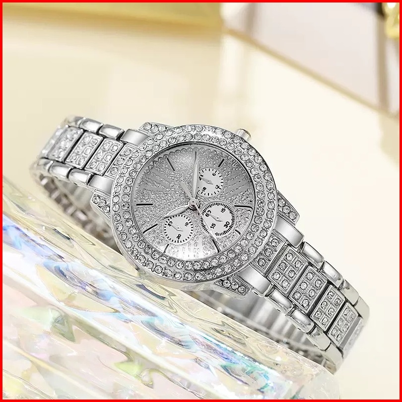 Jam Tangan Wanita Rantai Permata Berkilau Chrono Mewah Elegan Cantik