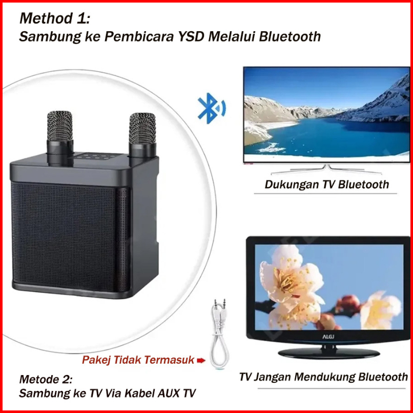 Mogo Super Bass 2025 Speaker Bluetooth Ys-203 Karaoke 2 Mic Wireless Mini Nirkabel Musik Box Speaker