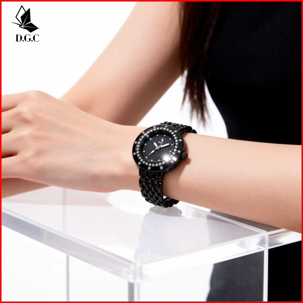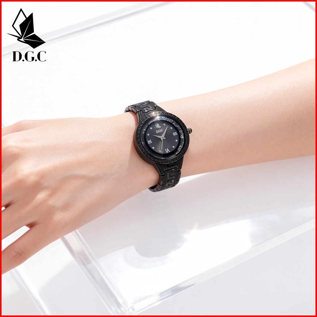Dgc G203 Jam Tangan Wanita Berlian Bisnis Santai Wanita Jam Tangan Cewek Dial Bulat Romawi Rantaii Stainless Steel