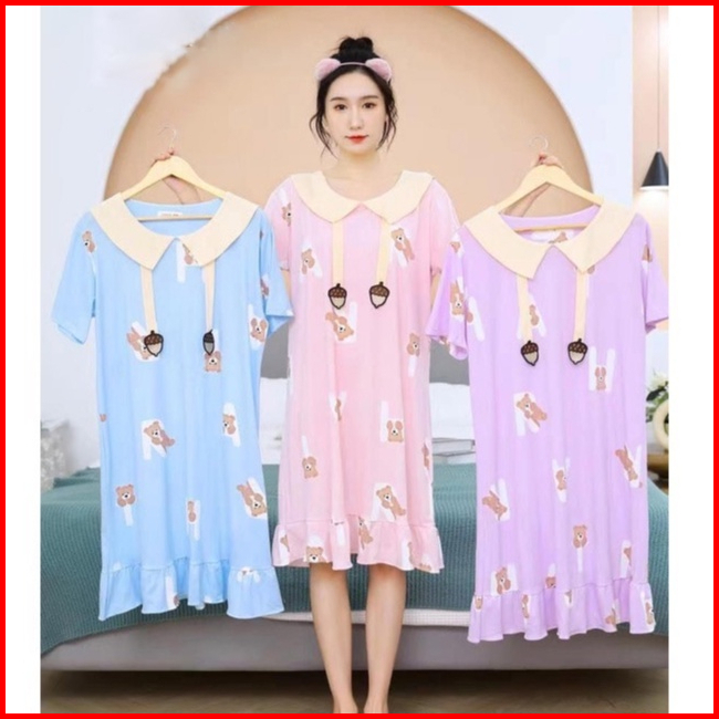 Polini Daster Spandex Dress Piyama Tidur Daster Jumbo Lengan Pendek