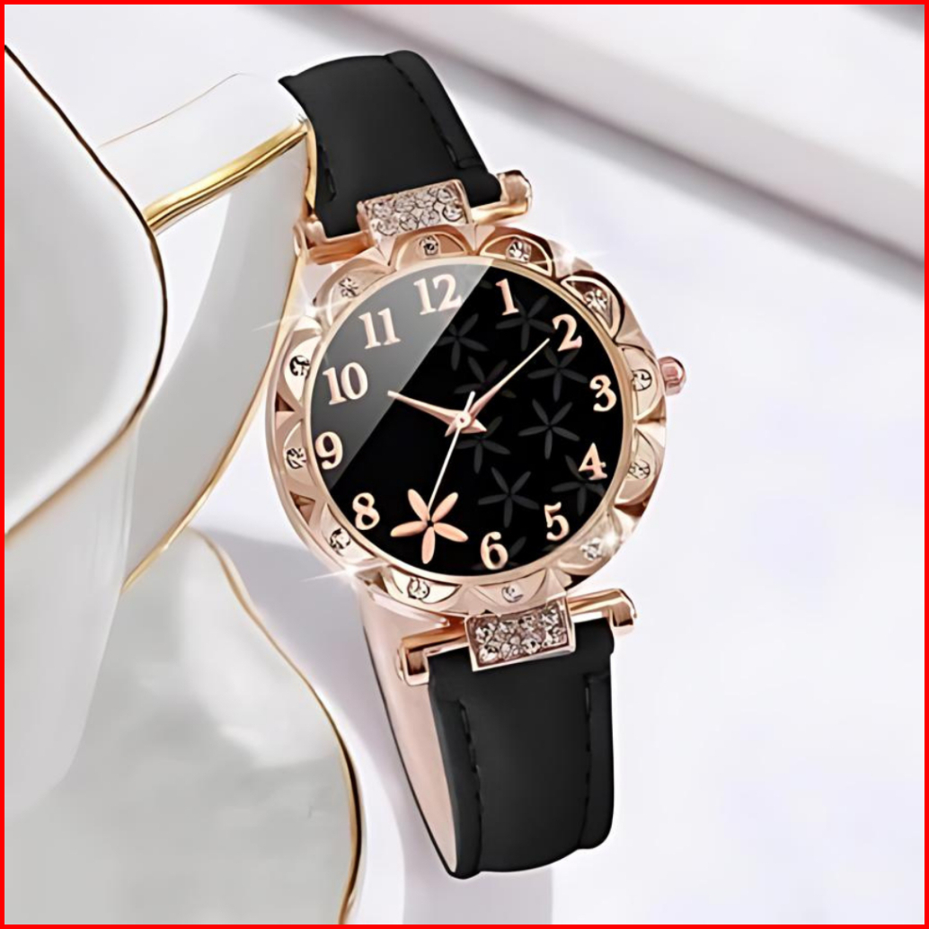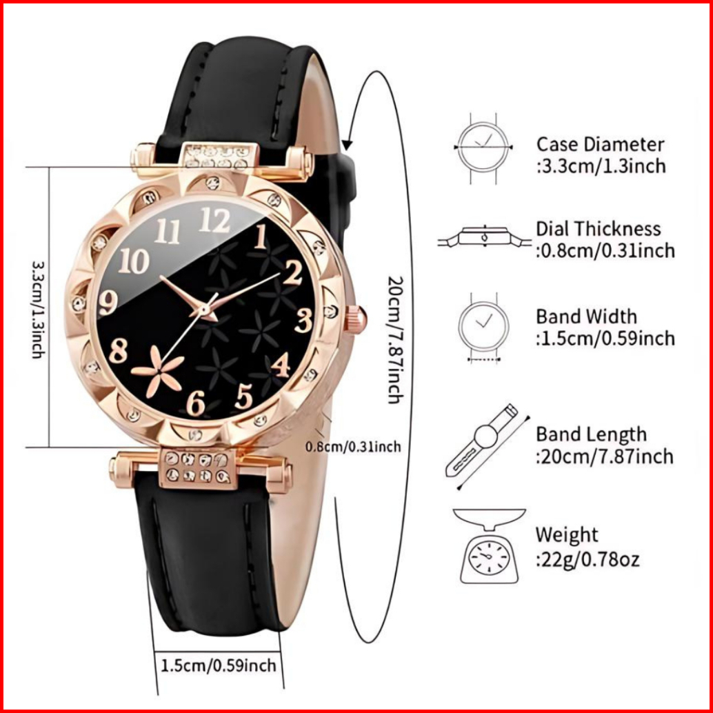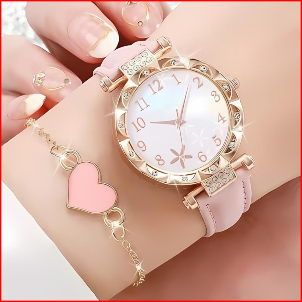Trendypuff - T0104 Jam Tangan Wanita Fashion Bulat Kecil Tali Kulit - Set Gelang Bonus Box Cantik