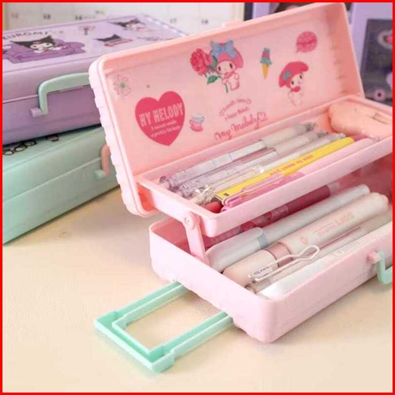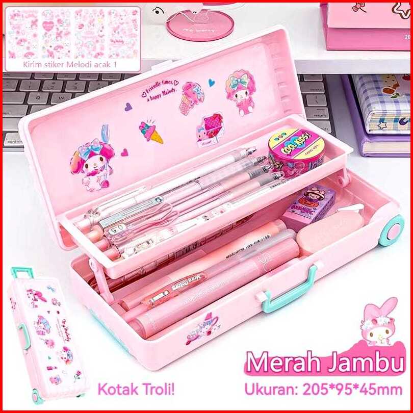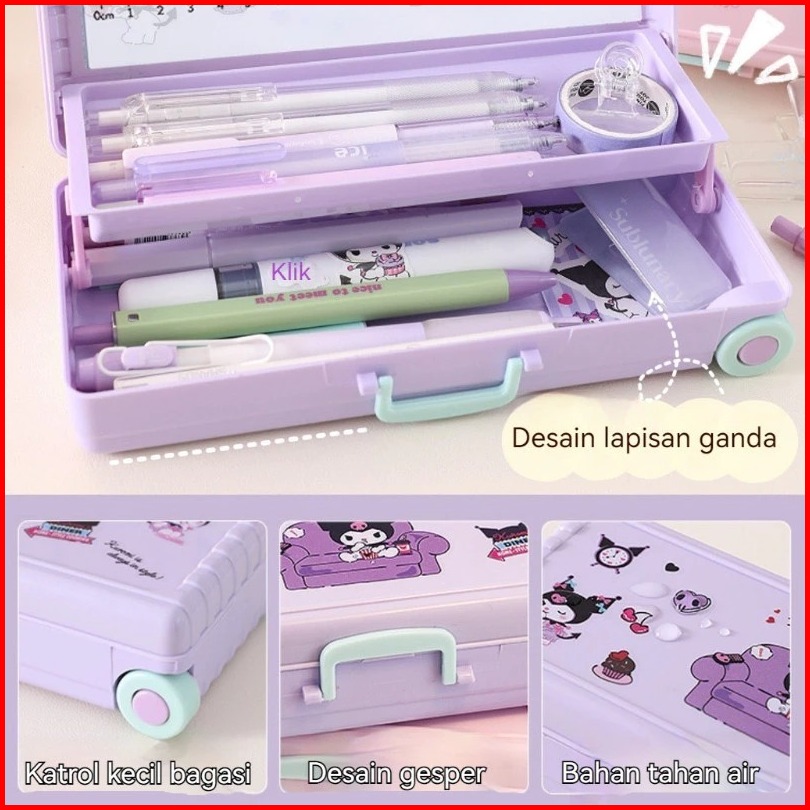 Kotak Pensil Troli Lucu Kotak Alat Tulis Dua Lapis Kuroomii Koper Kreativitas Kapasitas Besar Pemodelan Kotak Pensil Sek