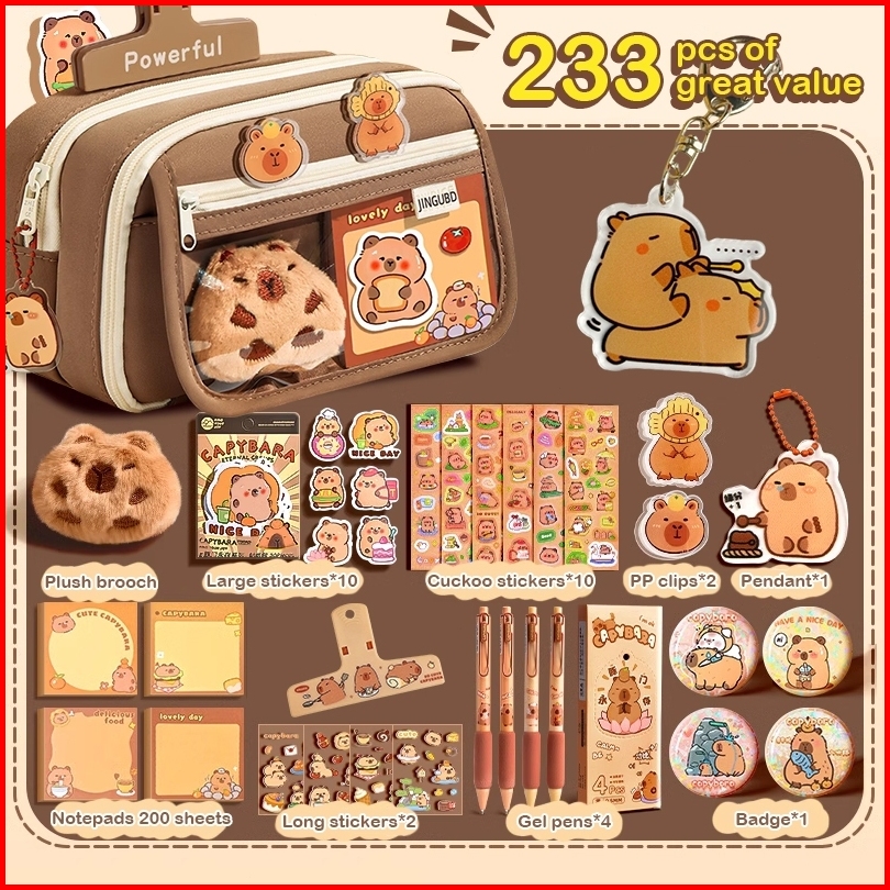 233 Pcs Capybara Tempat Alat Tulis Kotak Pensil Aesthetic Tas Penatempat Pencil Tas Pensil Kapasitas Besar