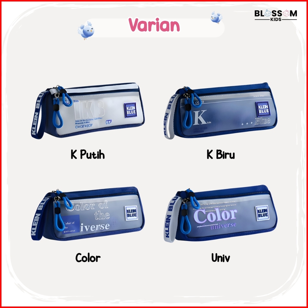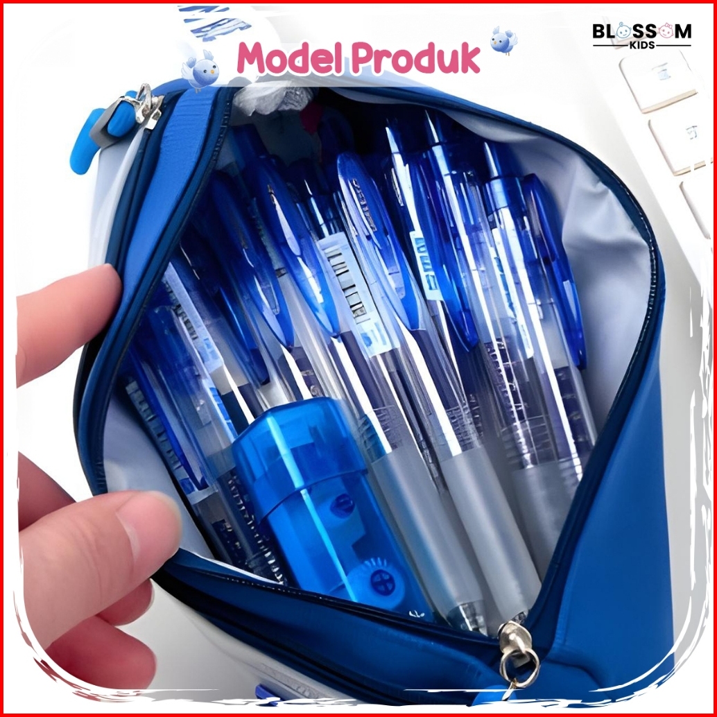 Pouch Tempat Pensil Blue Anak Sd Smp Kanvas Double Resleting Elegan Blossom Kids