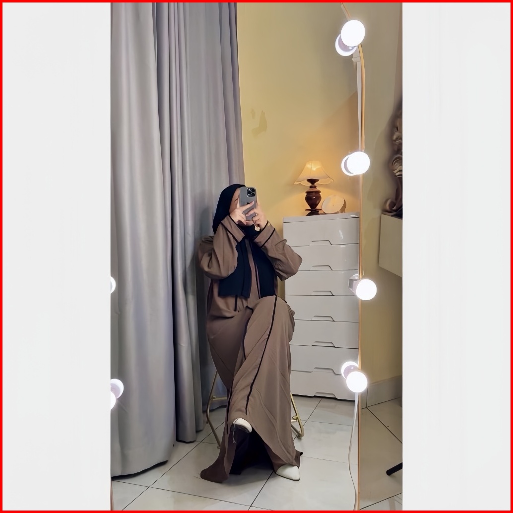Abaya Hameeda - Abaya Remaja Dewasa - Abaya List Putih - Gamis Wanita Crinkle Airflow