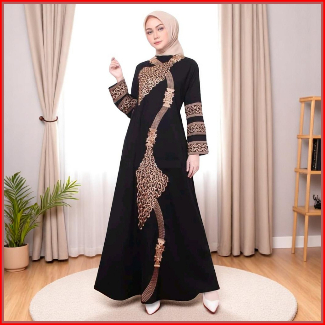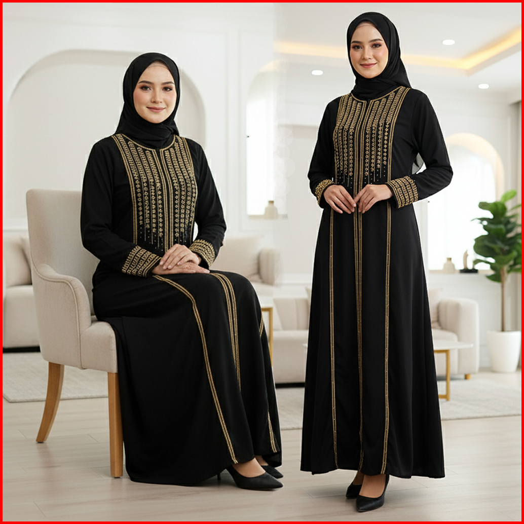 Galeri Abaya Bordir Gamis Turkey 1229 Wanita Remaja Aesthetic Arab Saudi Kain Jetblack Premium Hitam