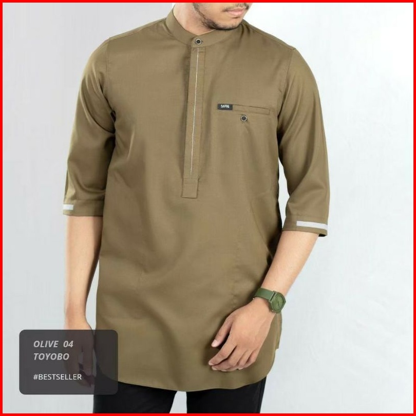 Kurta Koko Pakistan Pria Saviq Lengan 3 4 Toyobo List Tangan