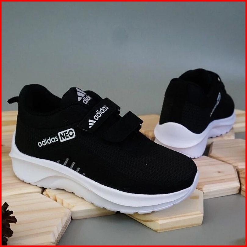 Sepatu Anak Perempuan Laki Laki Sekolah Olahraga Sd Tk Paud Hitam Neo Kretekan Velcro Termurah