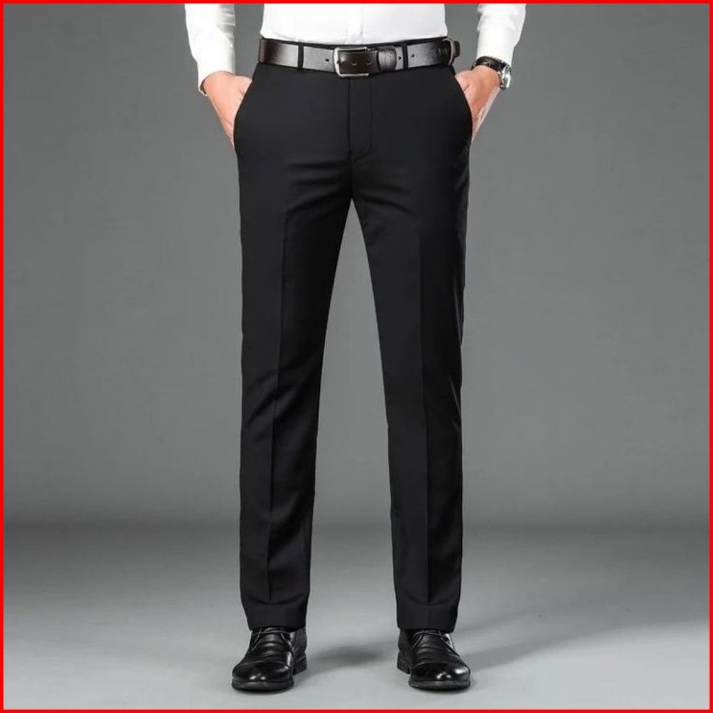 Panfam - Celana Bahan Formal Pria - Hitam - Reguler Fit