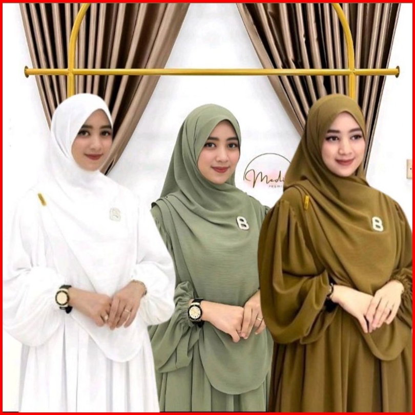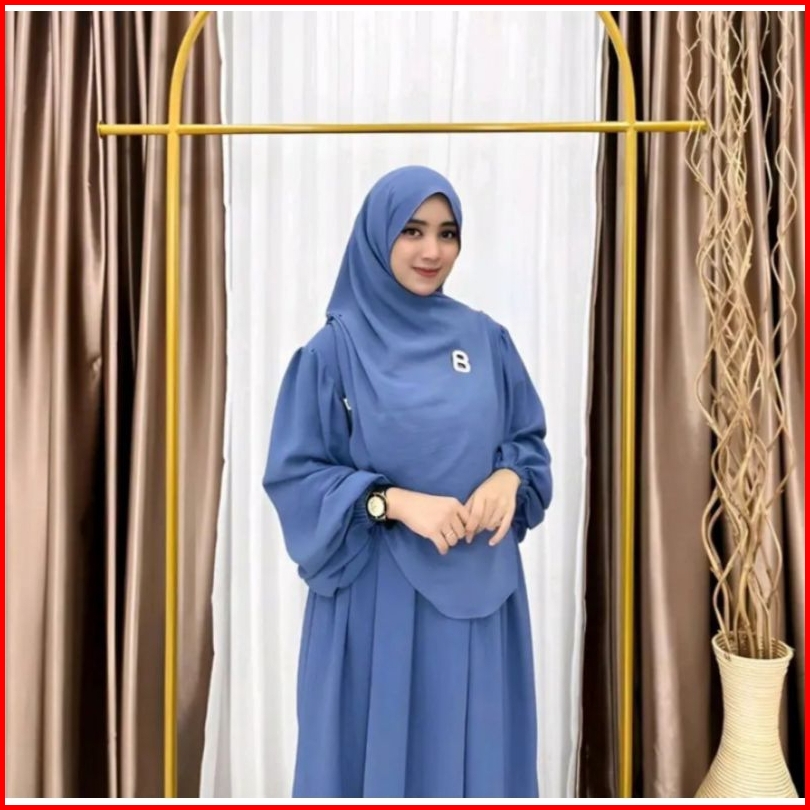 Gamis Abaya Syar I Set Hijab Pashmina Oval Crinkle Airflow Premium Polos