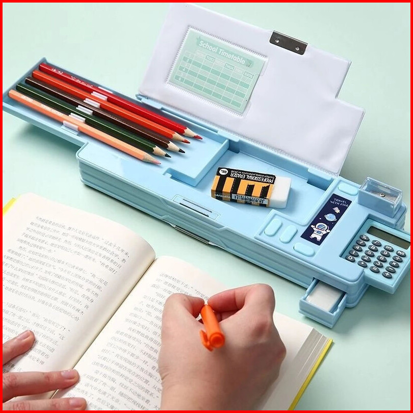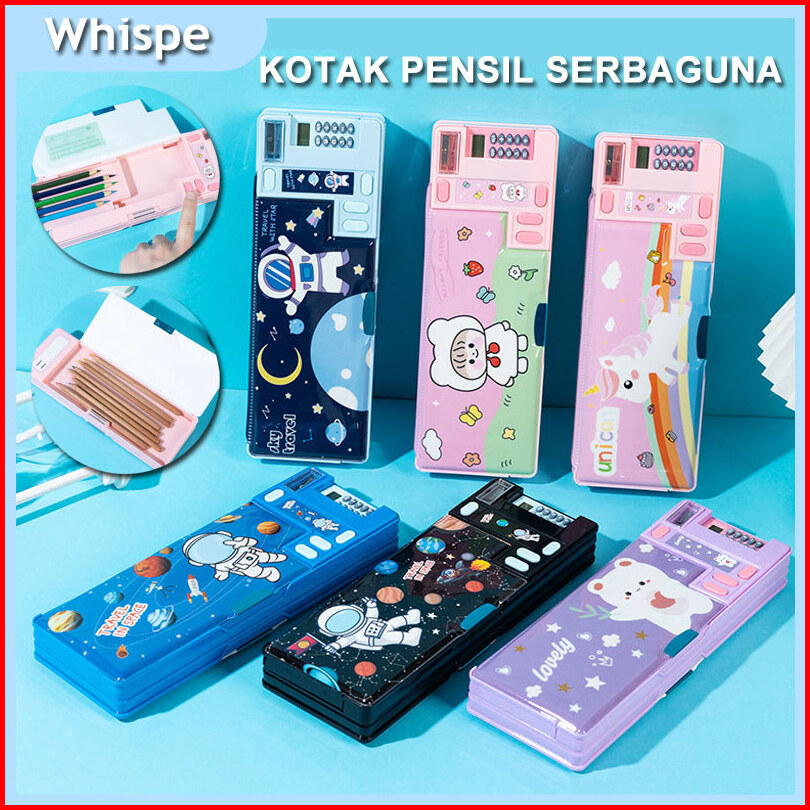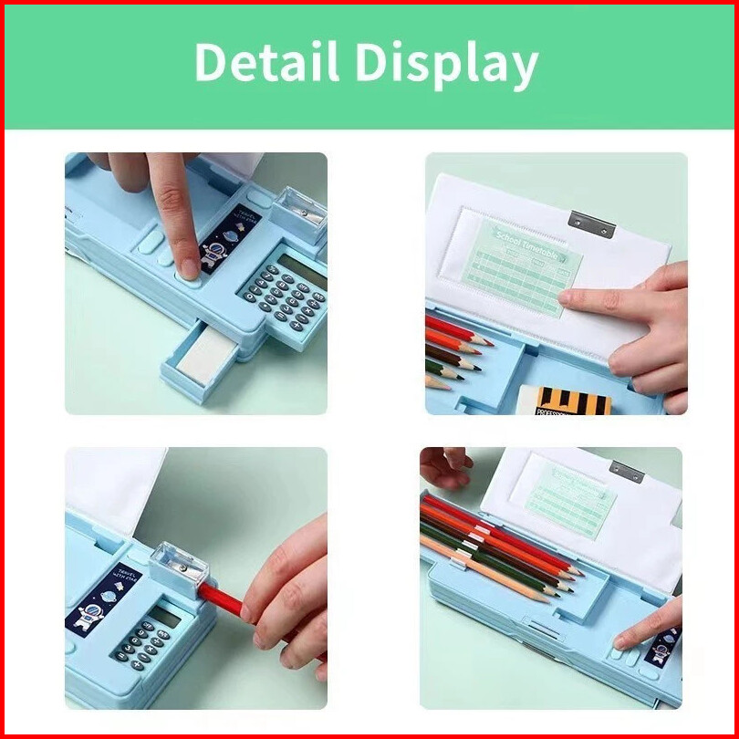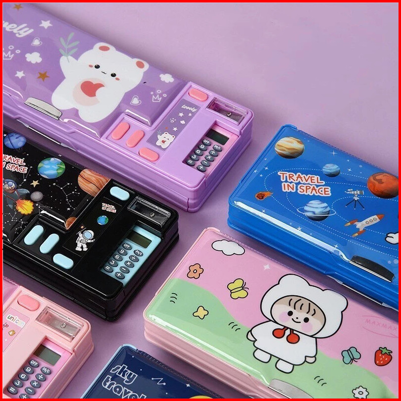 Kotak Pensil Multifungsi Kotak Alat Tulis Pop Out Tempat Pena Berkapasitas Besar Dua Sisi Astronot Dengan Kalkulator Rau