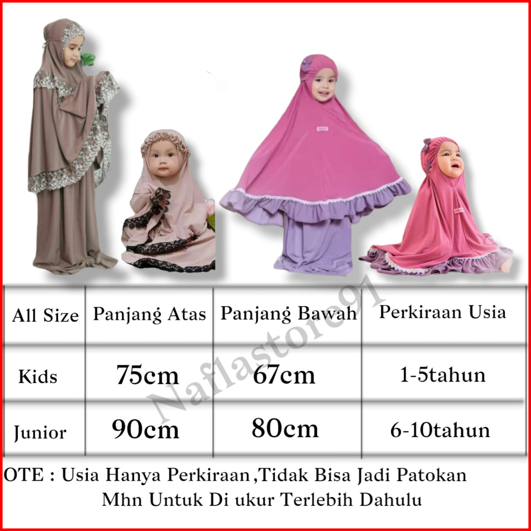 Mukena Anak Cantik 1-10tahun Mukena Renda Jersey Serena Set Muslim Anak Perempuan