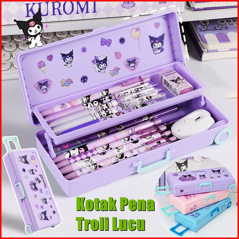 Keiasataskotak Pensil Bentuk Troli Lucu Alat Tulis Dua Lapis Koper Pencil Case Alat Stationary Sekolah Kartun