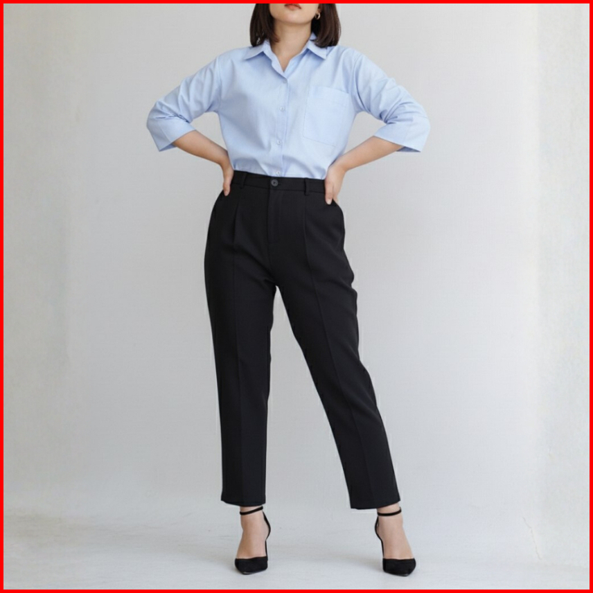 Kleova Jean Ankle Pants - Celana Panjang Wanita Highwaist Kerja Kantor - Straight Loose Pants