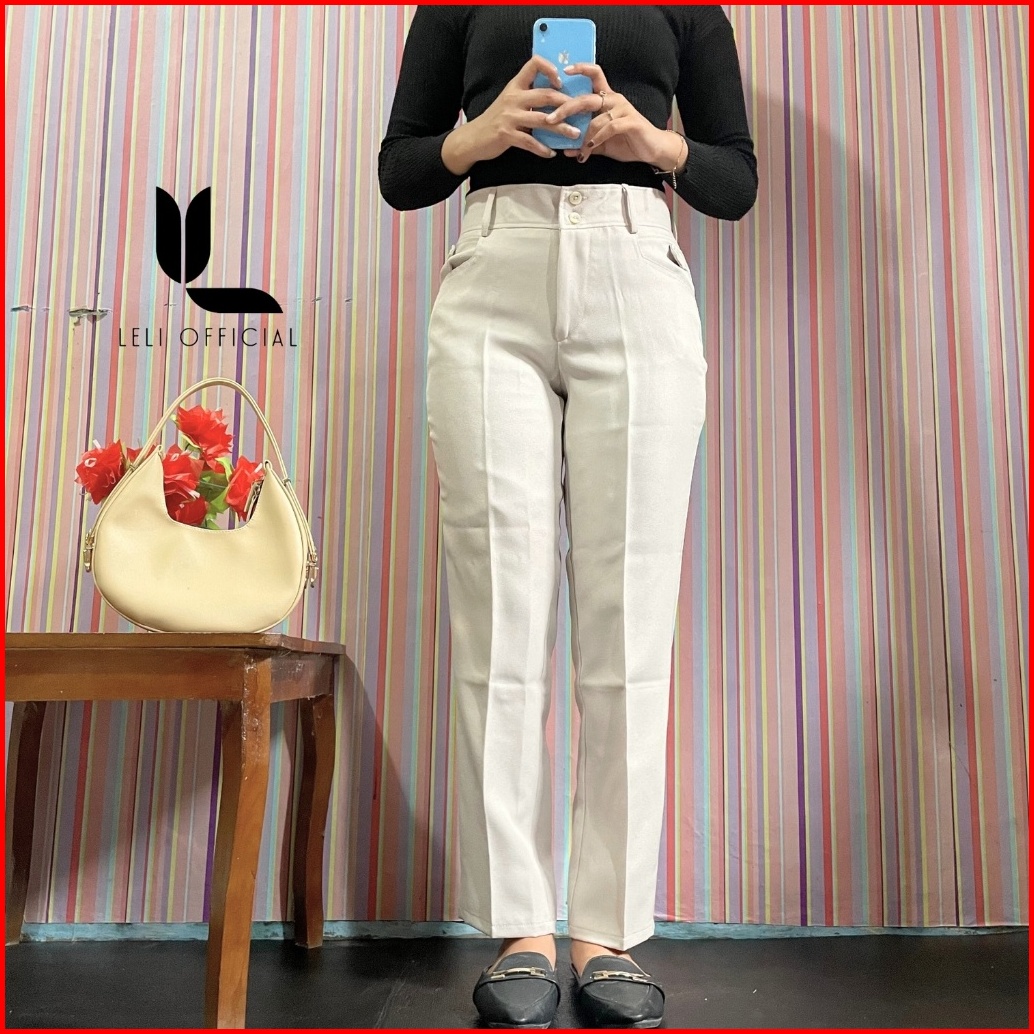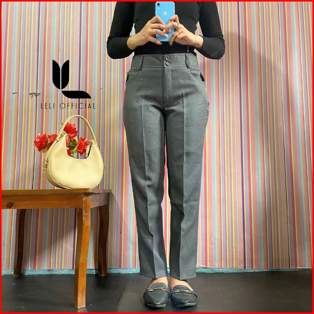 Celana Bahan Wanita - Celana Panjang Kerja Kantor Anti Kusut Slimfit Resleting Wol Premium Dewasa