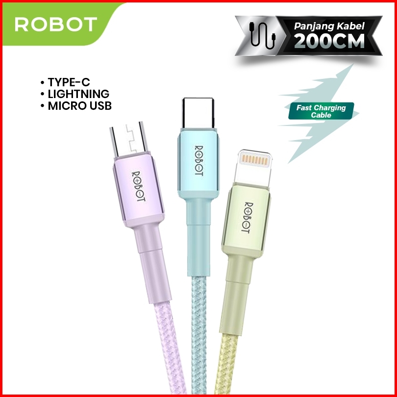 Robot Kabel Data Quick Charge Type C Micro Usb Lighting 2m Data Cable Fast Charging Rsm200 Rsc200 Rsl200 Original - Gara