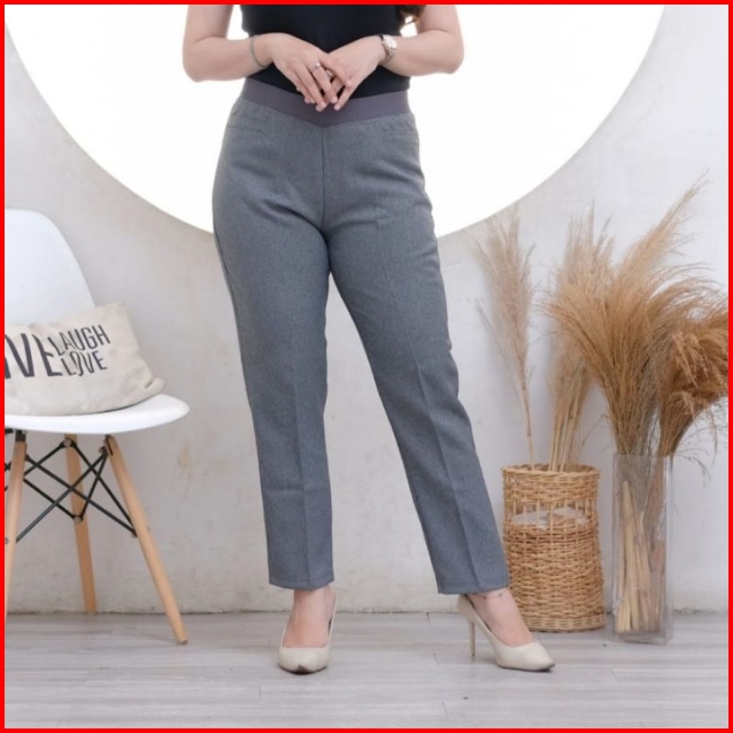 Mnd Celana Kerja Bahan Formal Wanita Model Pinggang Karet Size Sampai Jumbo