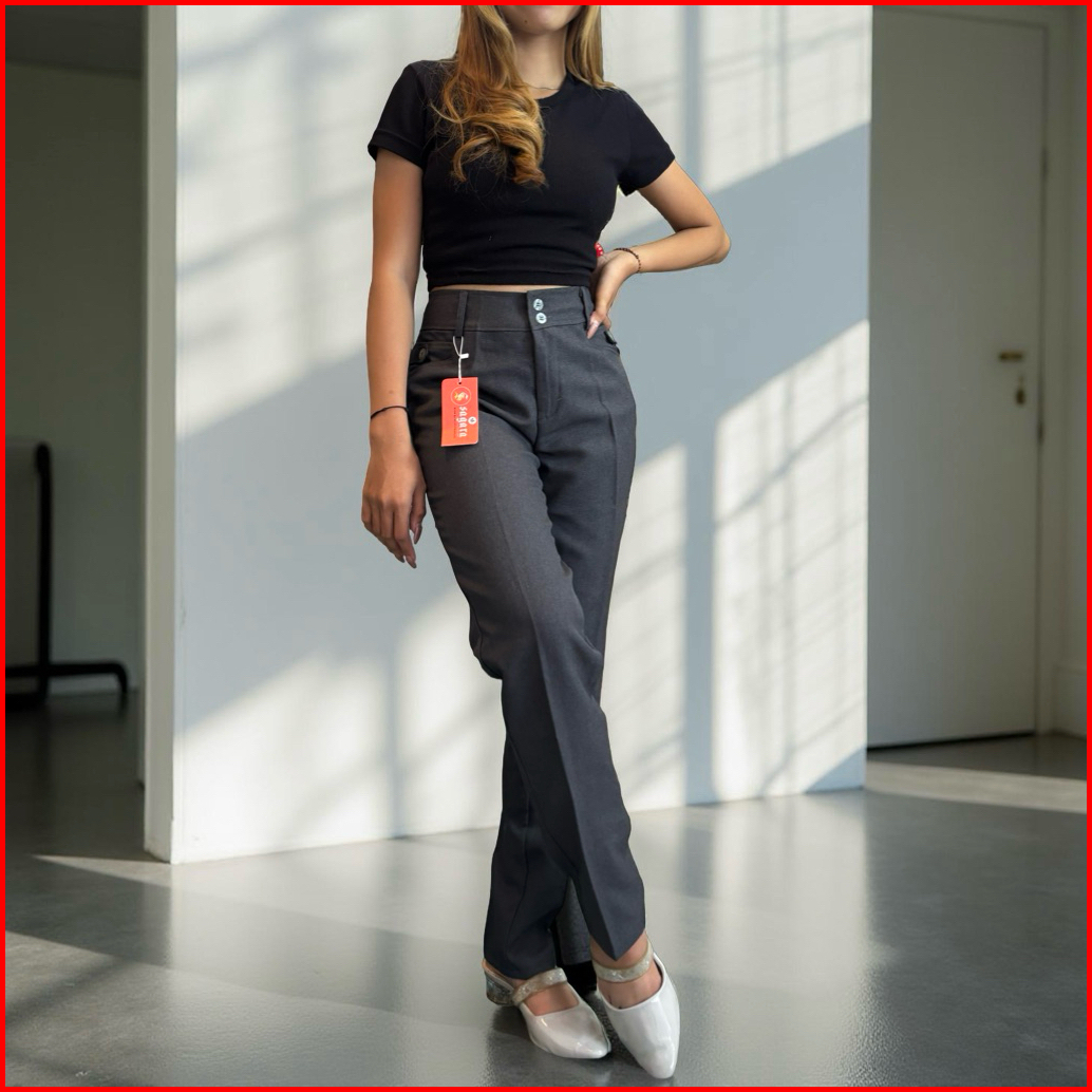 Celana Kerja Kantor Wanita Celana Bahan Wanita Kantor Jumbo Model Pinggang Resleting