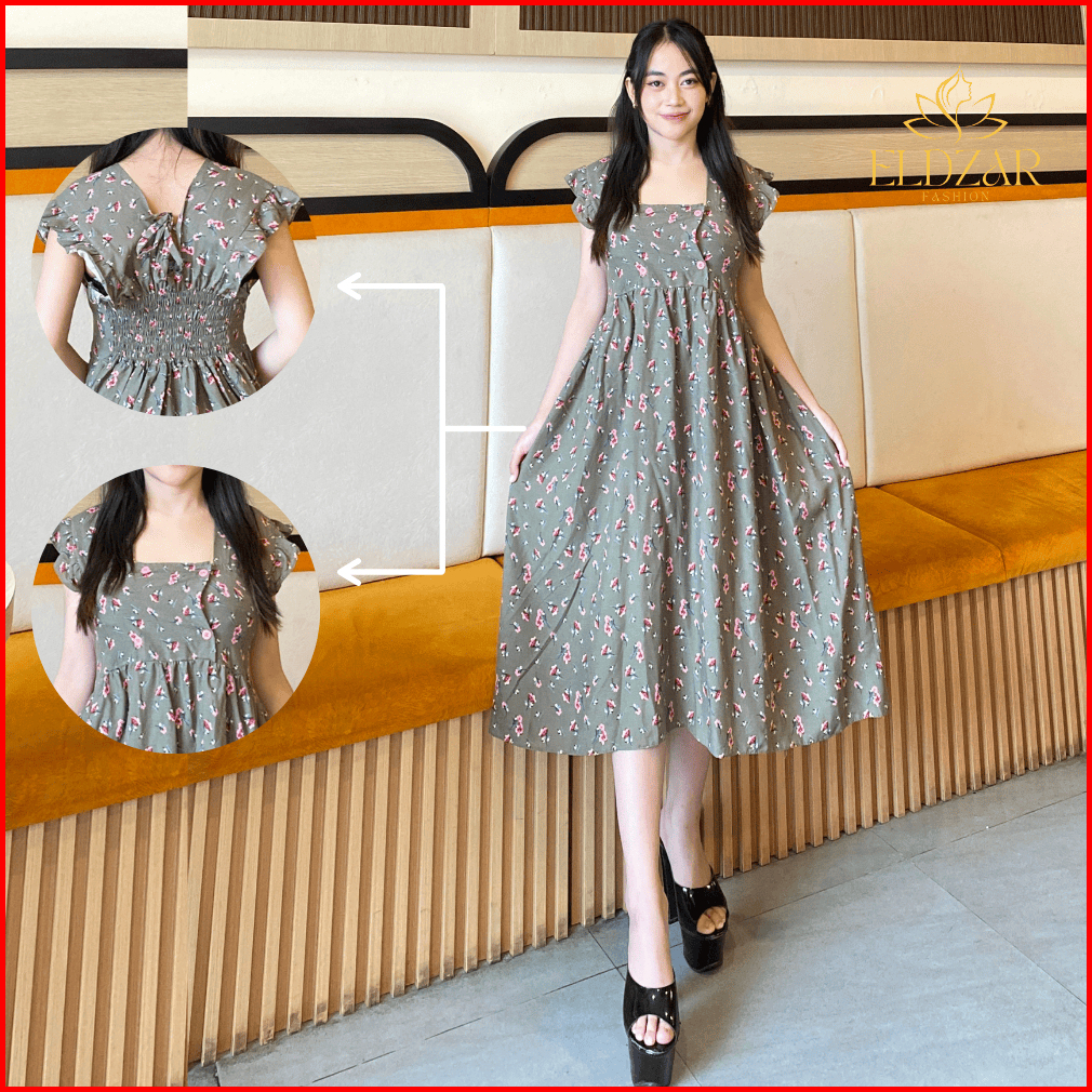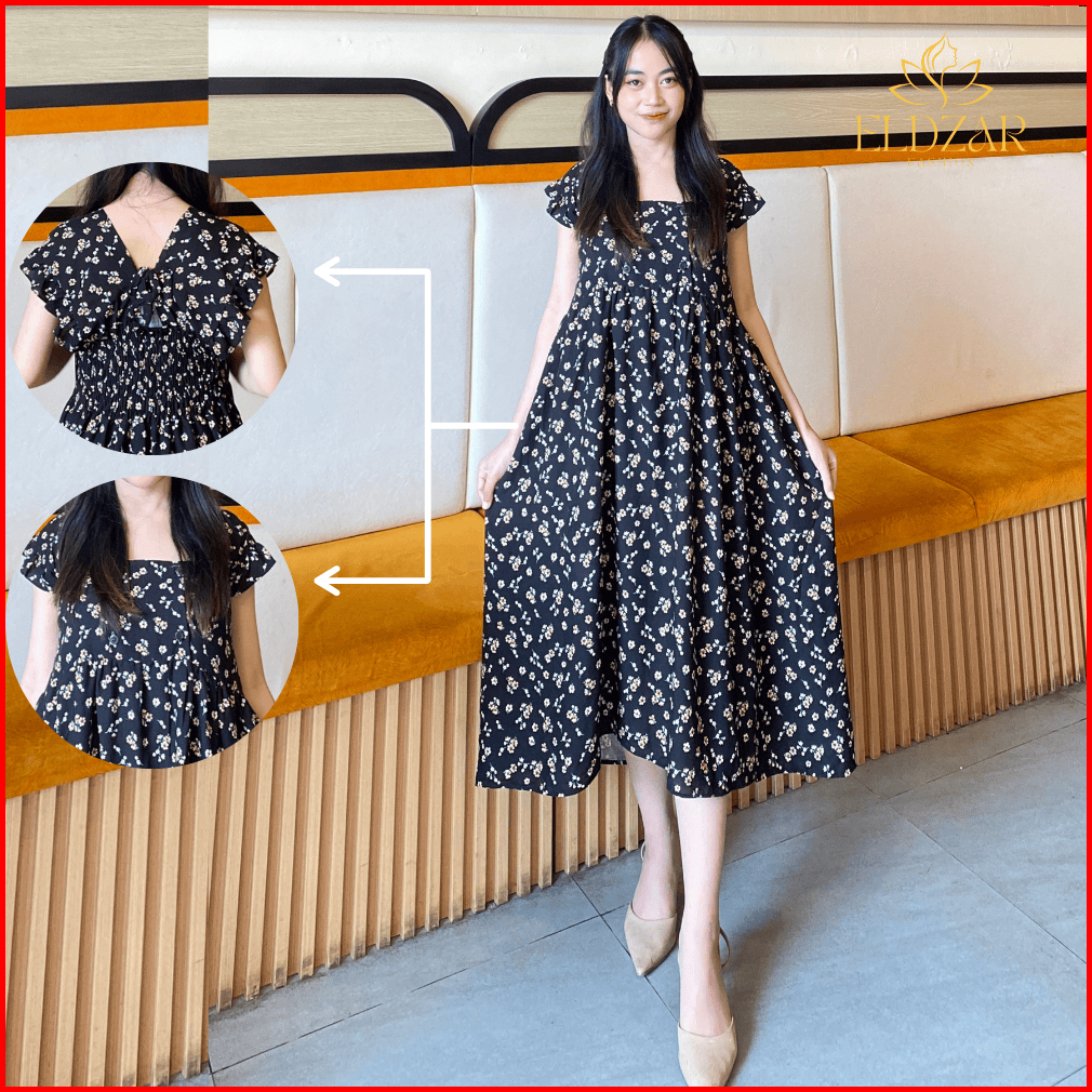 Eldzar Home Dress Aurelia Ruffle Pundak Daster Motif Bunga Busui Friendly Kancing Untuk Keseharian