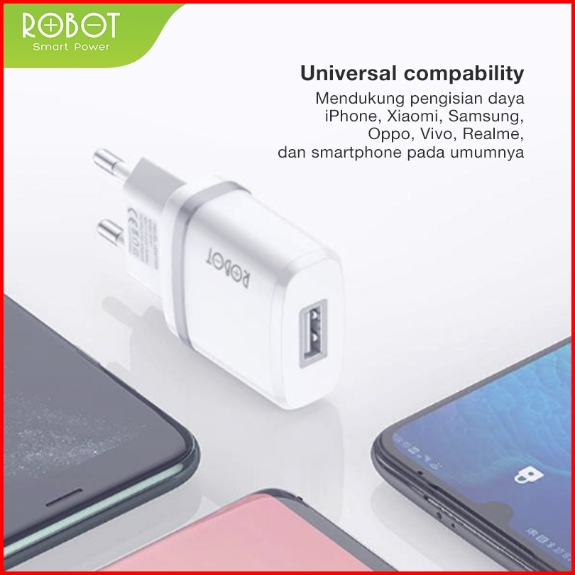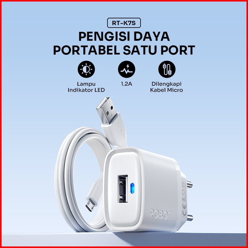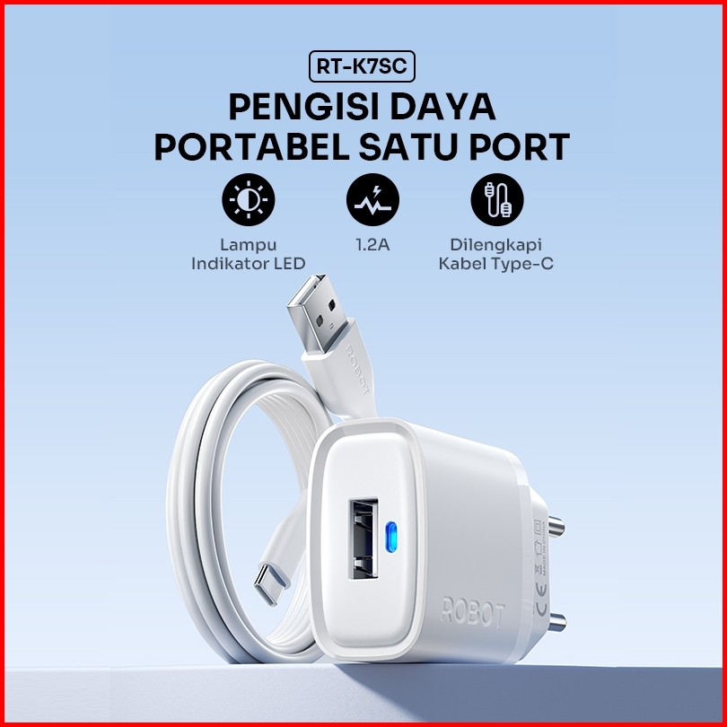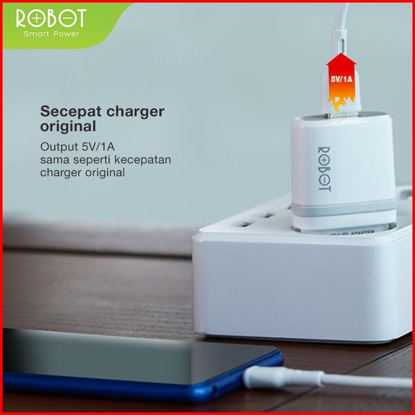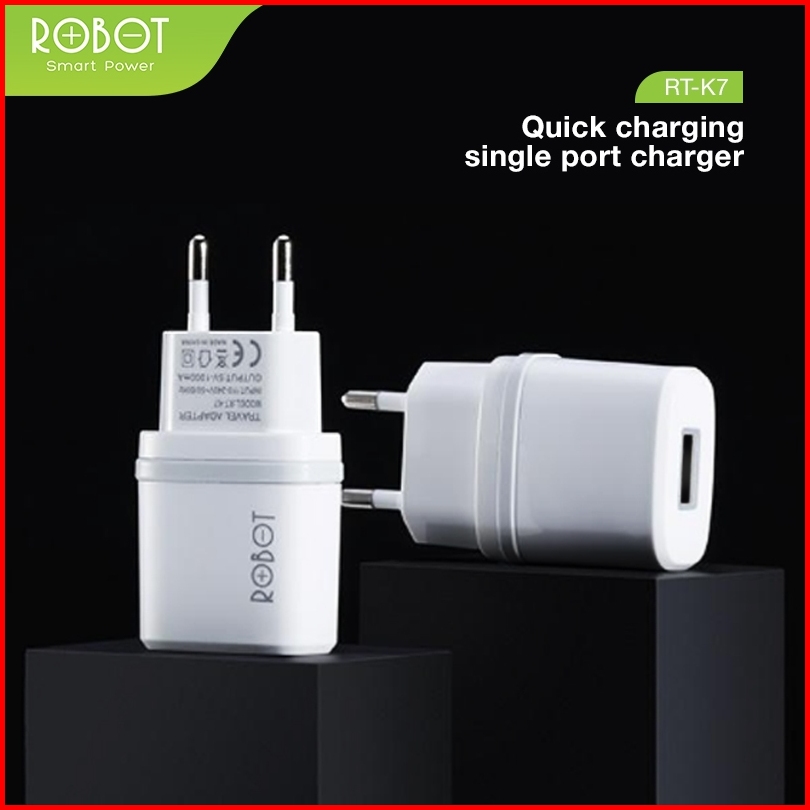 Robot Smart Phone Quick Charging Micro Type C Adaptor Output 5v Dengan Lampu Indikator Led Fireproof Charger Rt-k7 Serie