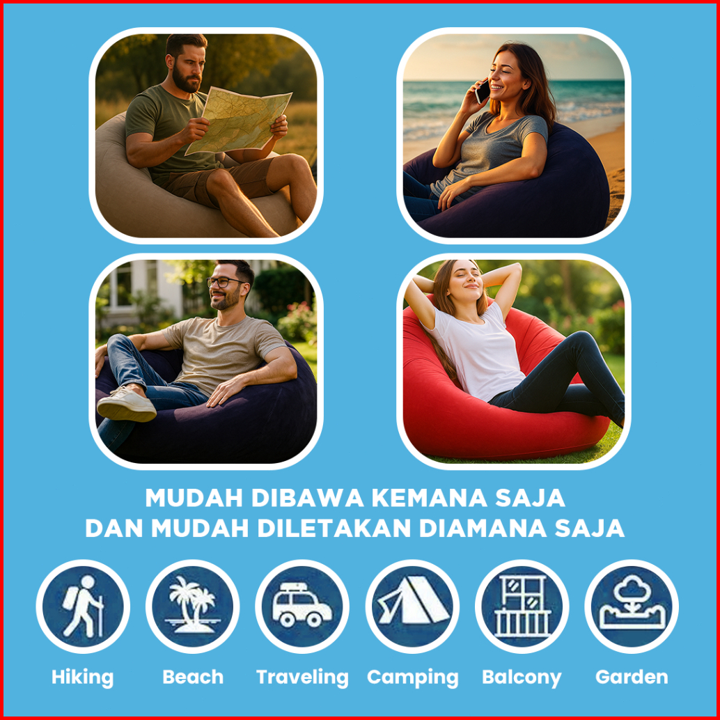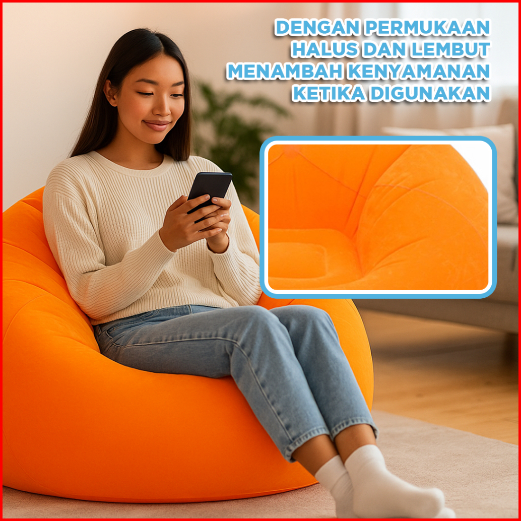 Yuxuan Sofa Santai Angin Empuk Inflatable Bean Bag Portable Indoor Outdoor Gaya Minimalis Bludru Lembut-waterproof
