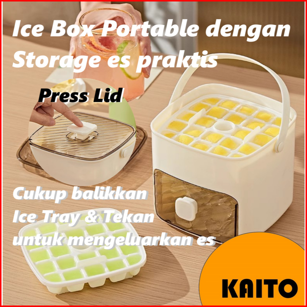 Kaito Kotak Cetakan 48 Es Batu Praktis Portable Press Ice Cube Box Outdoor Tekan Free Penjepit