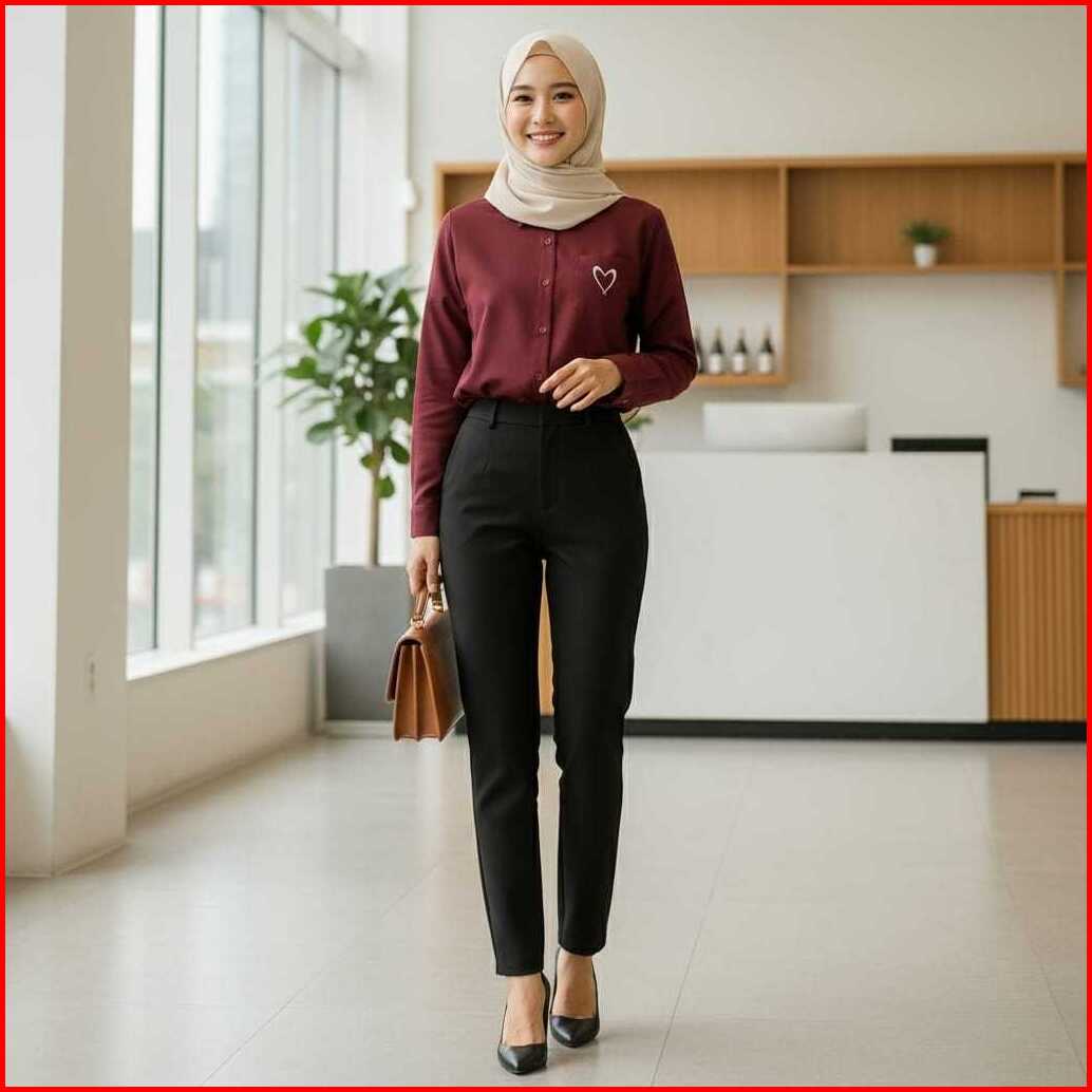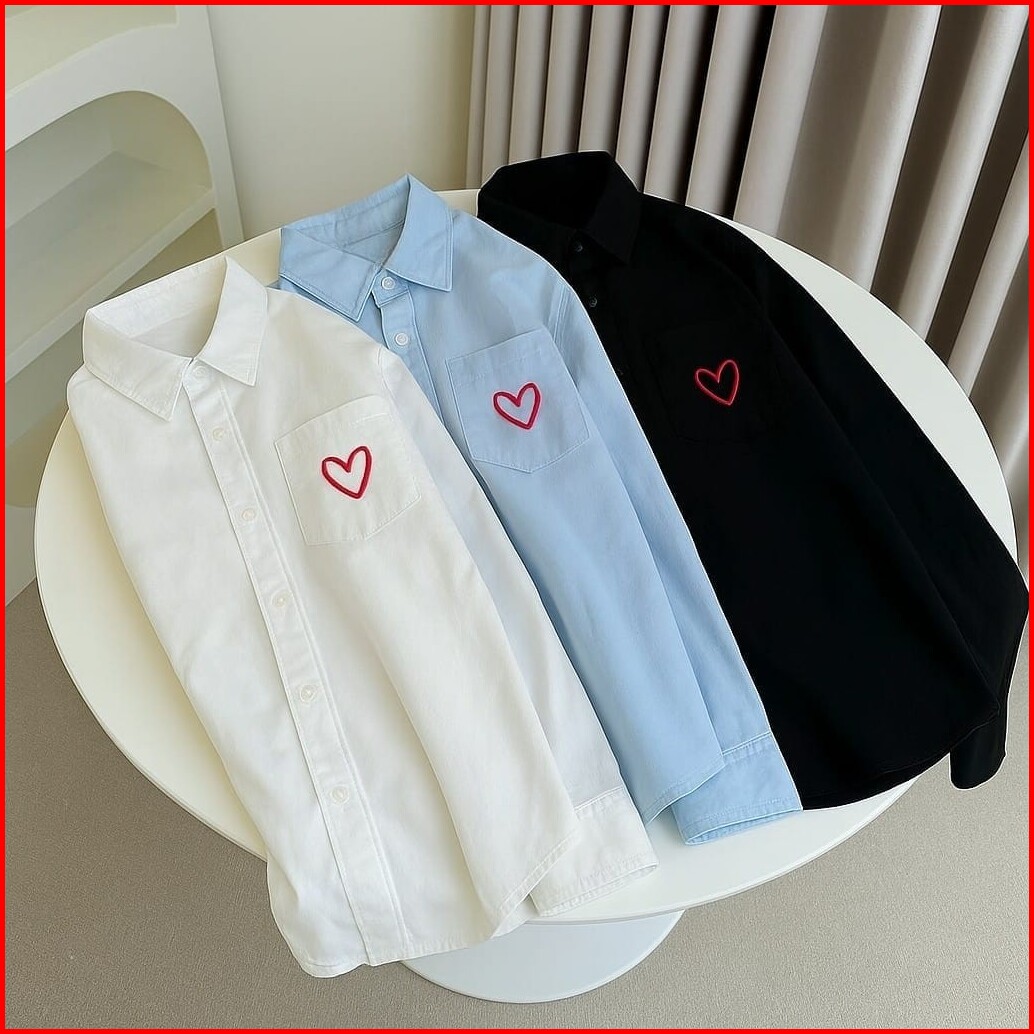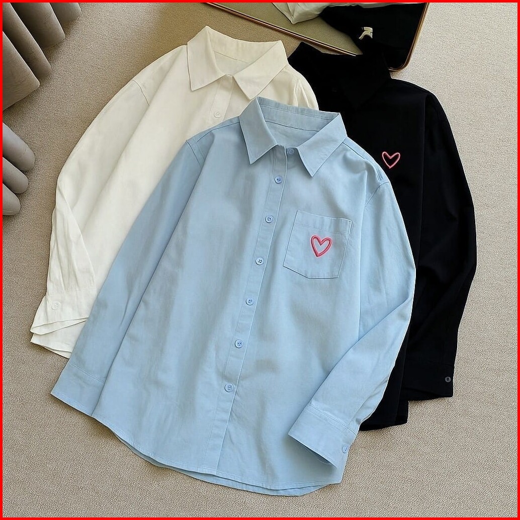 Femes - Love Shirt Top Blouse Lengan Panjang Baju Polos Kerja Wanita Korean Style