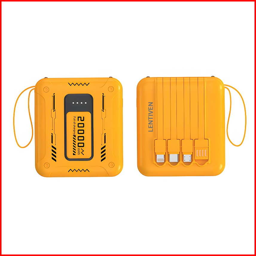 Grefus Lentiven Powerbank 20000mah Mini Fast Charging 4 Kabel Data Usb Dual Output Input Led Display Bh976 Type Pro
