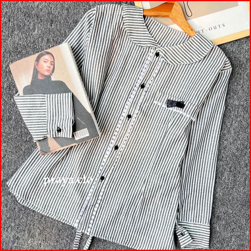 Praya.clo - Sofia Blouse Stripe Atasan Wanita Katun Salur Korean Style