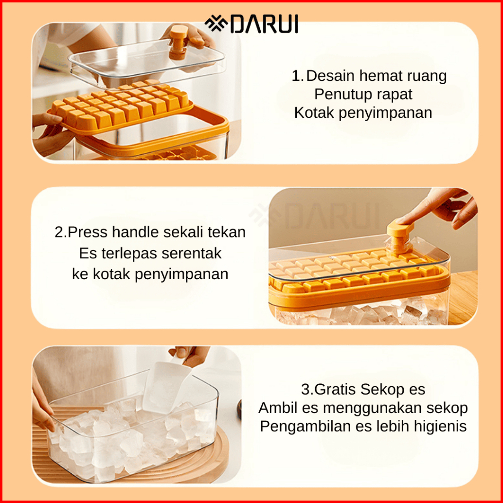 Darui C7 Cetakan Es Batu Sekali Tekan 32 Lubang Sekop Gratis Es Rapi Cepat