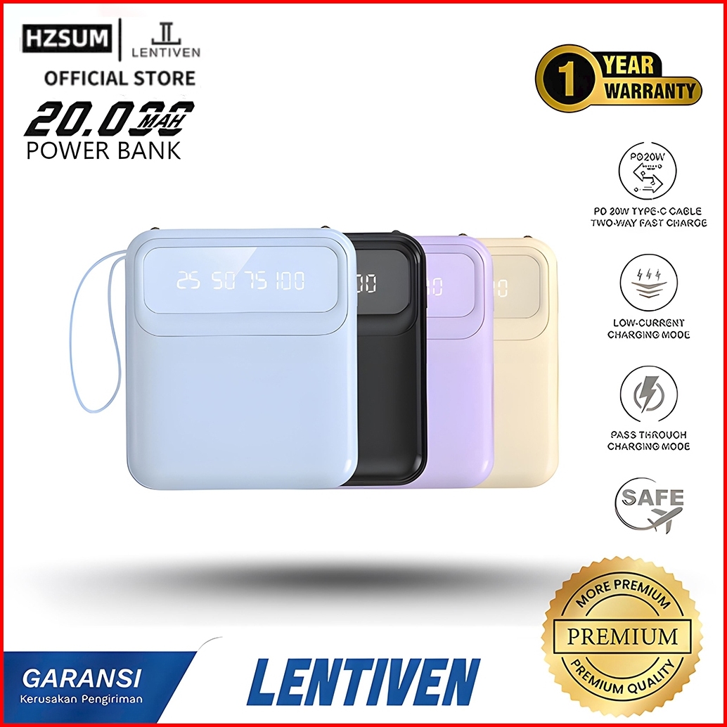 Hzsum Lentiven Powerbank 20000 Mah Mini Fast Charging With 4 Cable Data Built In Led Display