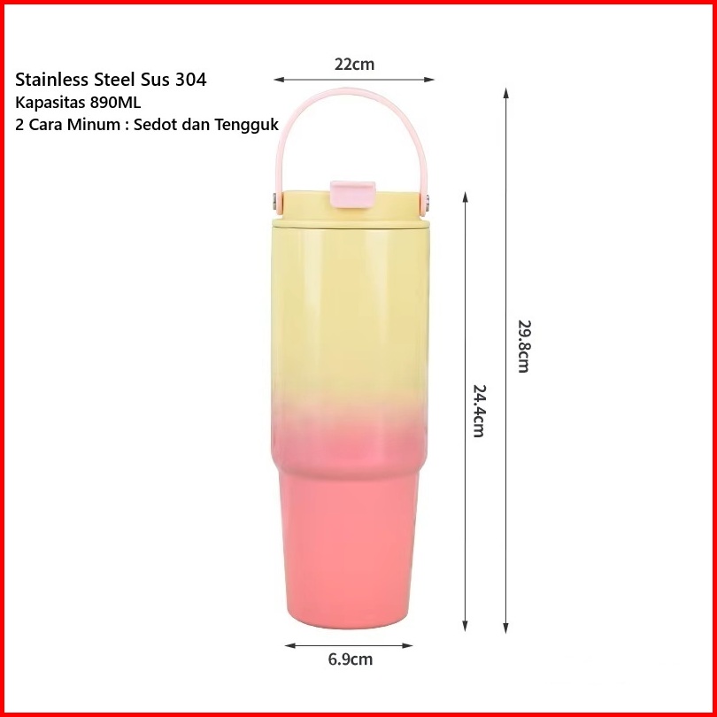 Tumbler Stainless Steel Sus 304 Macaroon Gradasi With Handle 890ml Tumbler Aesthetic Tumbler Viral