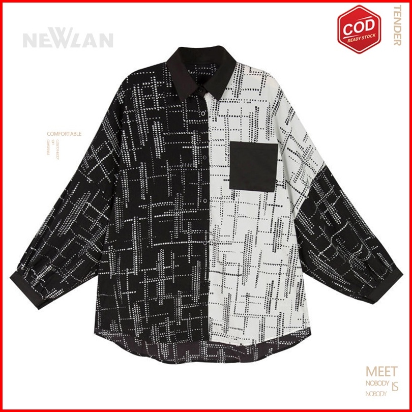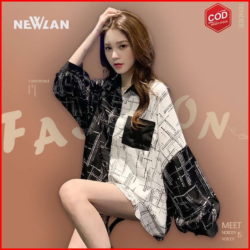 Newlan Cs008 Blouse Oversize Korea Kemeja Kombinasi Wanita Kemeja Korea Jumbo Wanita