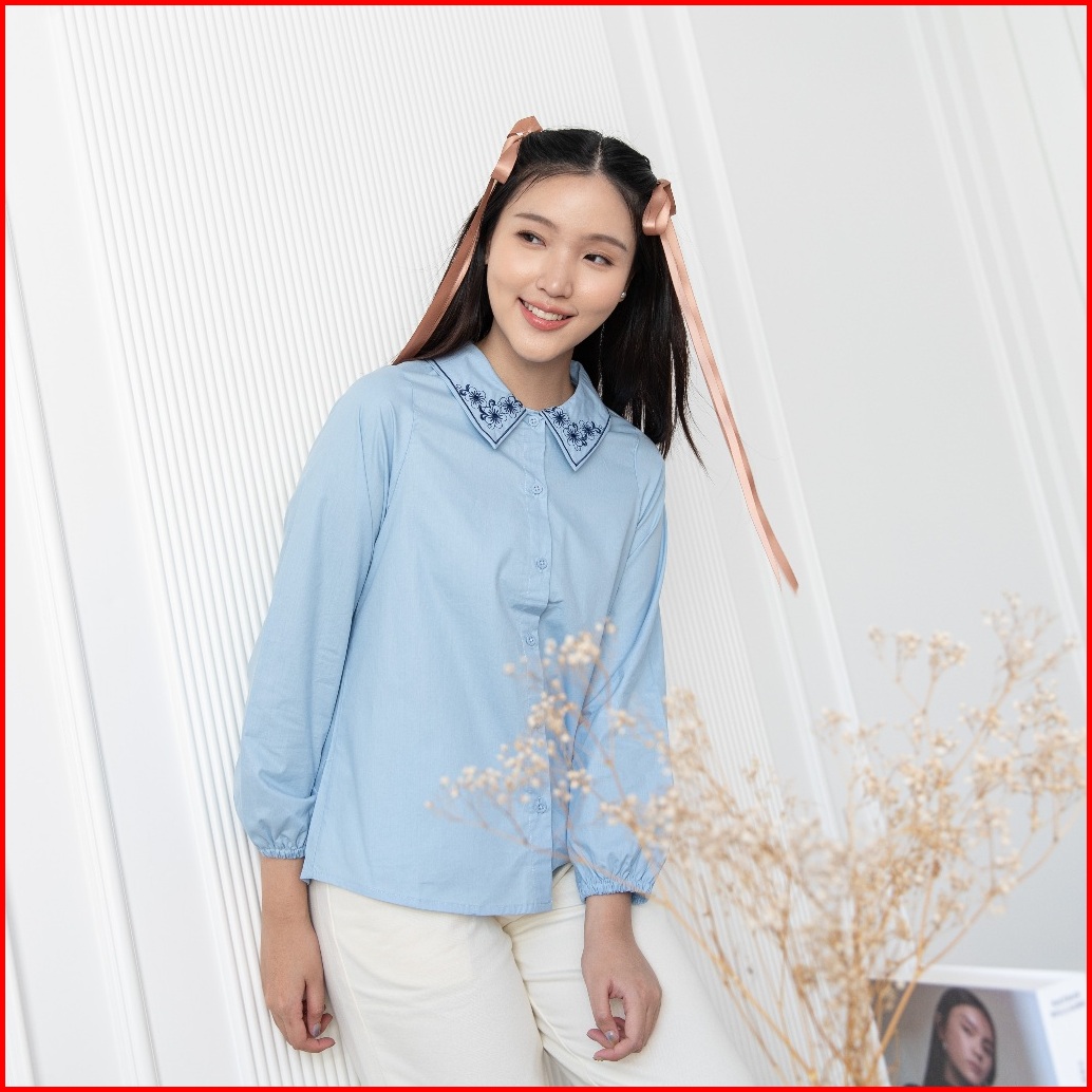 Ultraviolet Jungmin Embroidered Top 321 Light Blue - Atasan Blus Wanita Korean Style