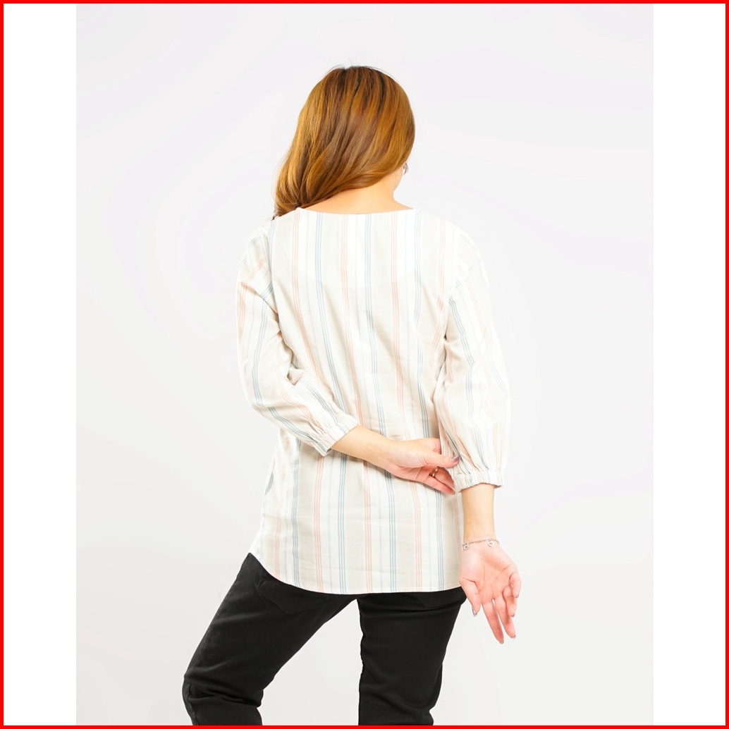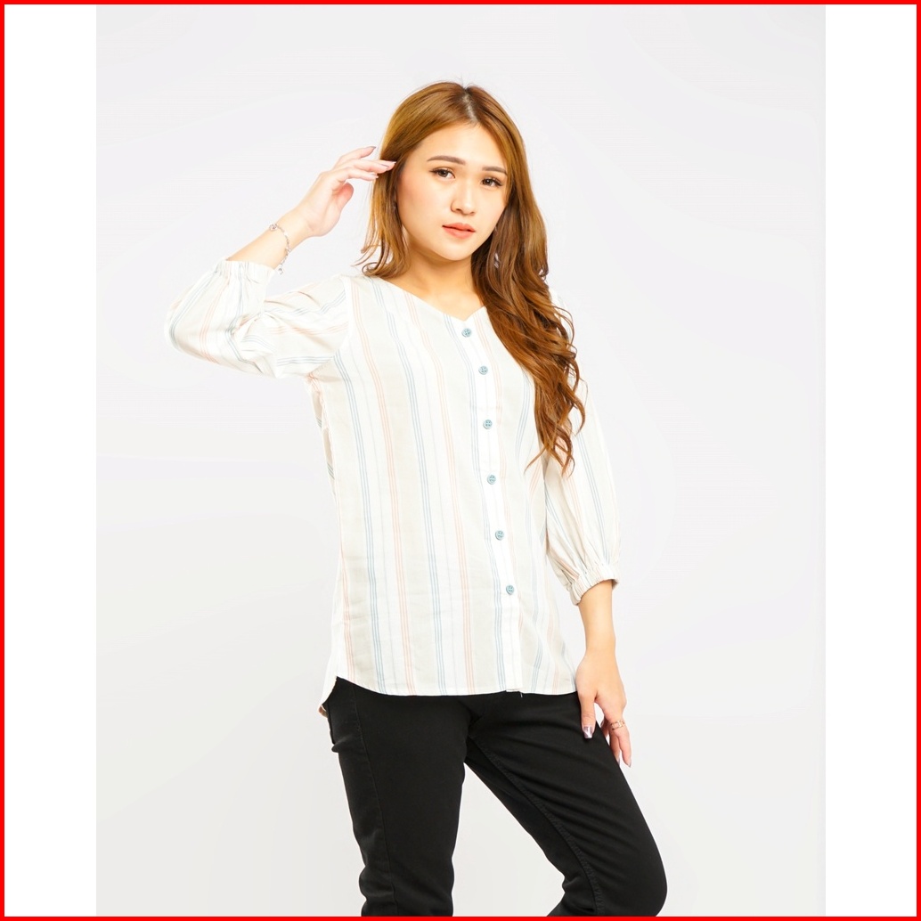 Mcb Blouse Wanita Stripe V Salur Reguler Big Size Button Camila Orange-pink 55-5104092