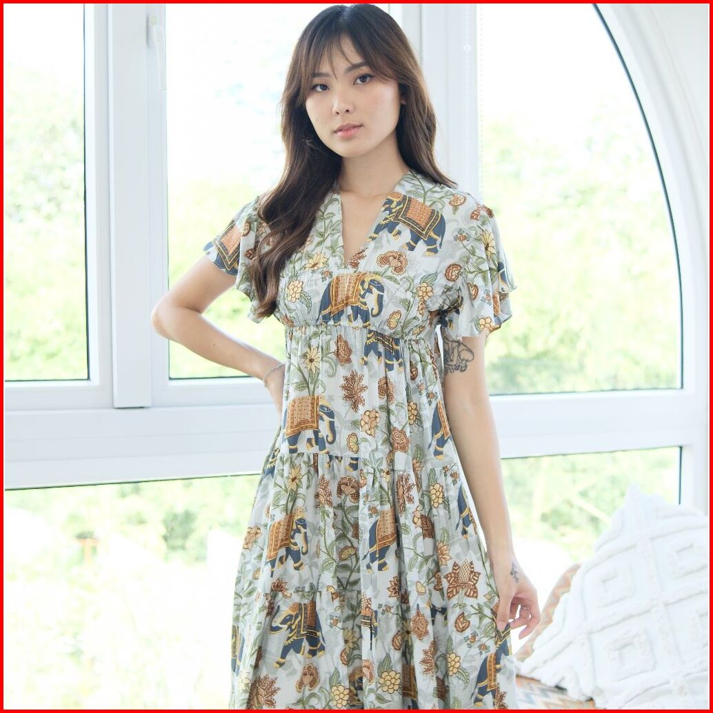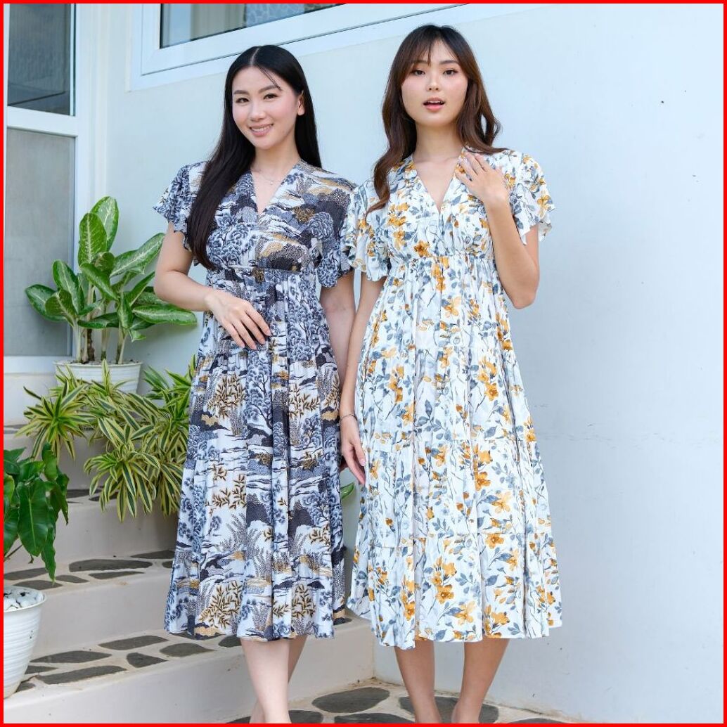 Aurae - Audrey Daster Dress Babydoll Wanita Lengan Pendek Motif
