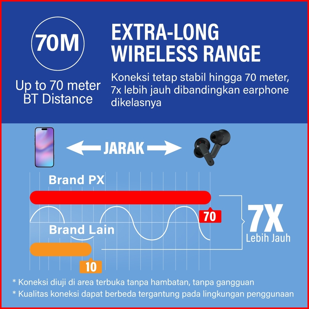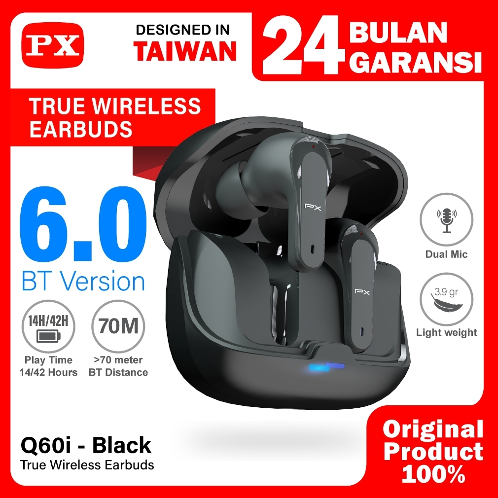 Headset Tws Earphone Bluetooth 6.0 Headphone Earbuds True Wireless Px Q60i - Black