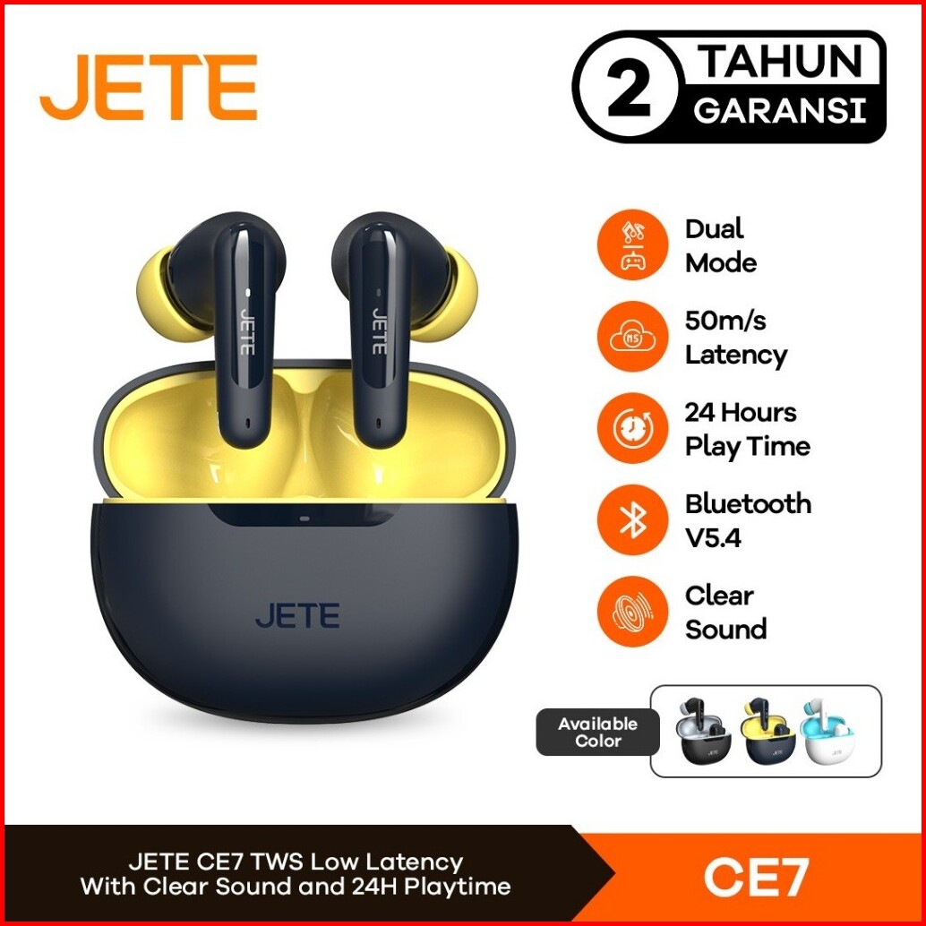 Jete Ce7 Tws Earbuds Headset Bluetooth 5.4 Playtime 24h Dual Mode Gaming Music Garansi 2 Tahun