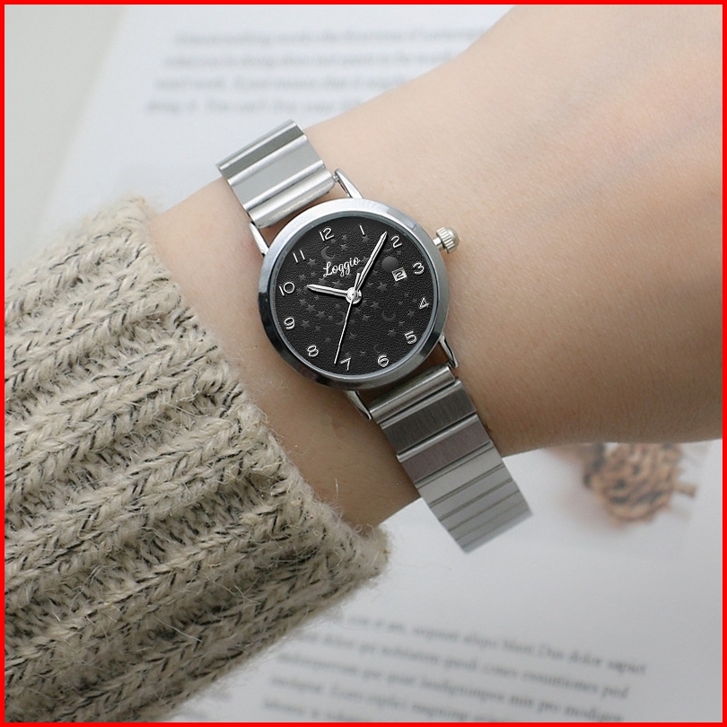 Loggio Jam Tangan Wanita Kecil Rantai Kekinian Bulat Strap Woman Watches Alloy Tali Besi Model Kekinian Simpel Elegan
