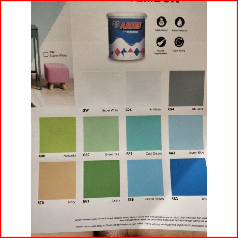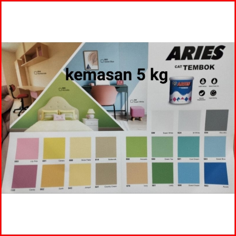 Cat Tembok Aries 5kg Cat Aries Produk Avian Paint 5kg Warna Lengkap.untuk Pengiriman Yang Aman Disarankan Ada Tambahan E