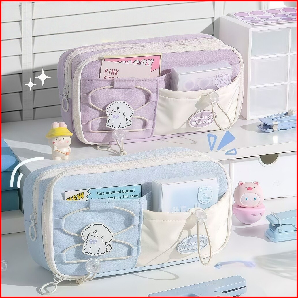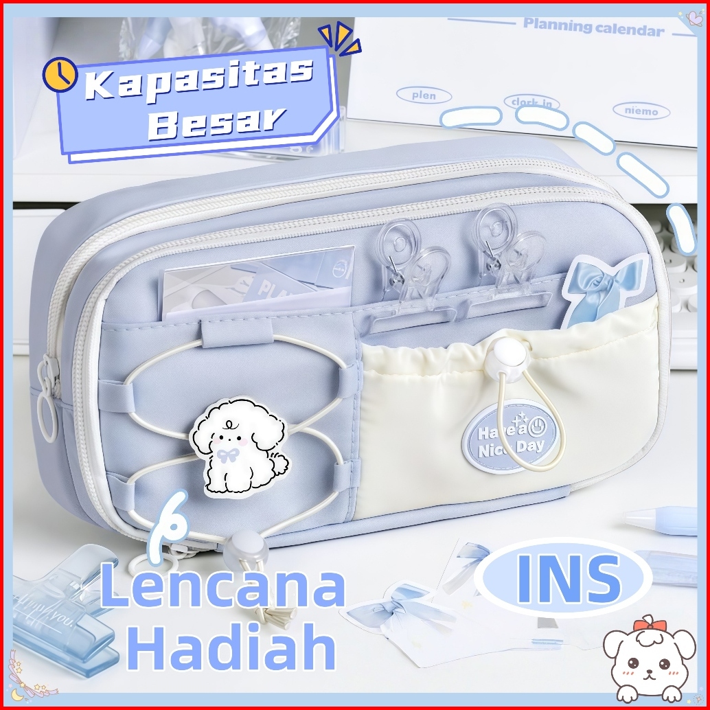 Lencana Gratis Kotak Pensil Lucu Tali Dutum Ganda Lucu Kotak Pensil Biru Susu Garam Laut Tempat Pensil Dengan Kapasitas
