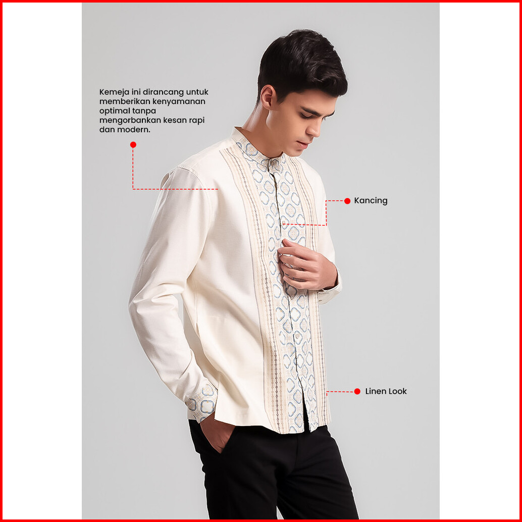 Manzone - Kemeja Koko Lengan Panjang Pria Raed Comfort Fit - White