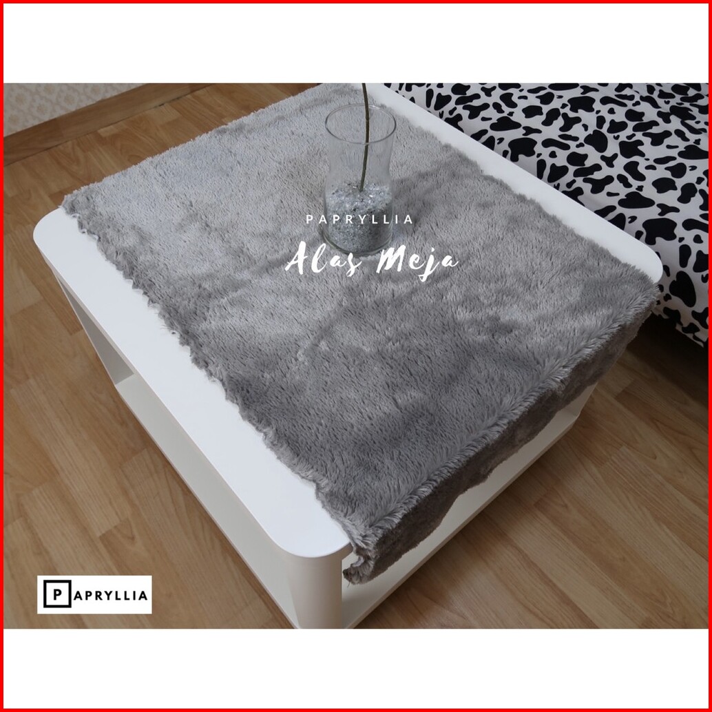Krucils Store - Taplak Meja Bulu Rasfur Lembut Ukuran 50x100cm Abu - Abu