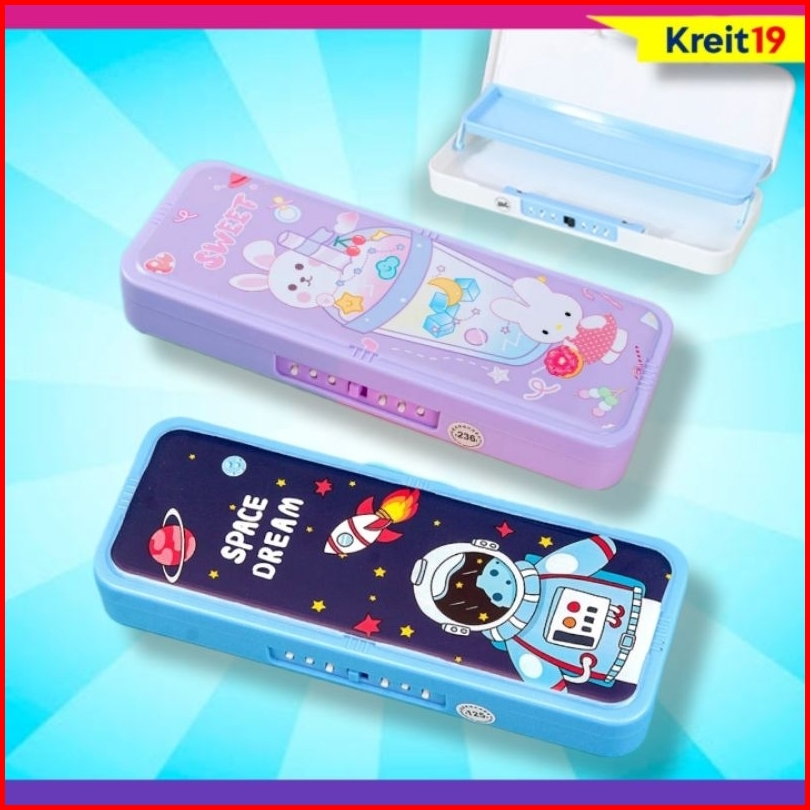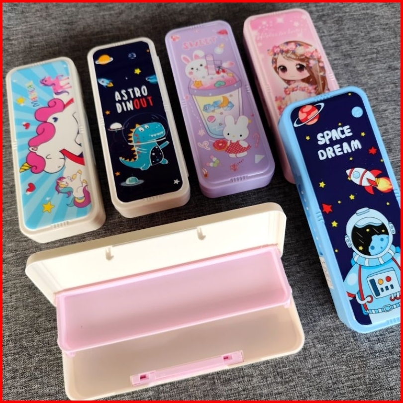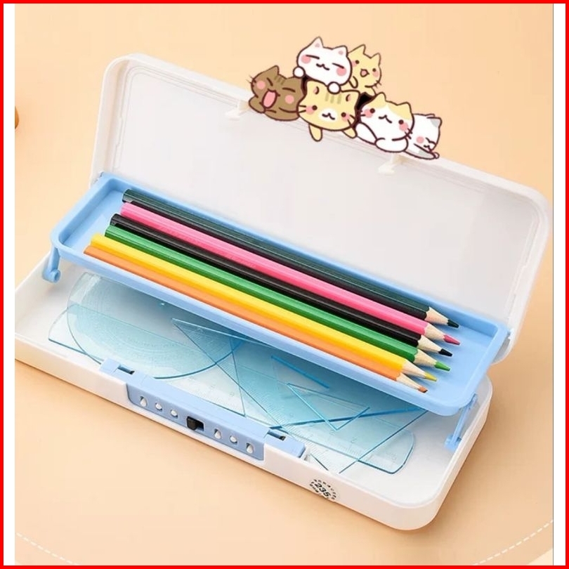 Kotak Tempat Pensil Anak Kode Sandi Tepak Pensil Tingkat 2 Layer Pencil Case Susun