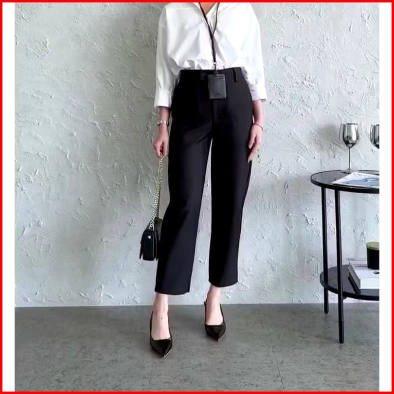 Ara Basic Pants Hinghwaist Celana Baggy Angkel Pants Celana Kantor Loose Pants