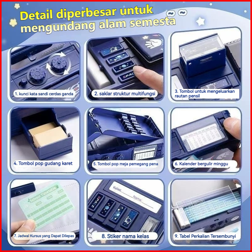 Kotak Pensil Pintar Dua Lapis Dengan Kunci Kombinasi Untuk Anak-anak Kotak Pensil Kartun Lucu Dengan Kapasitas Penyimpan