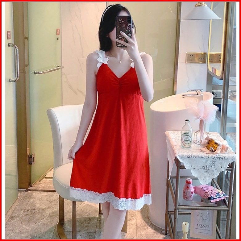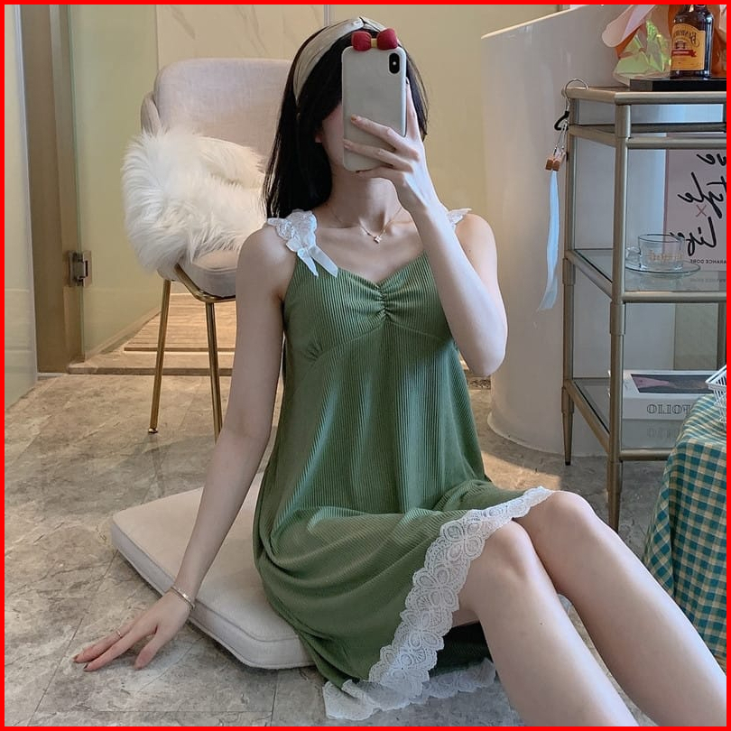 Daster Wanita Korea Style Dengan Cupbra 4 Size Fit To 70 Kg - Baju Tidur Import Premium