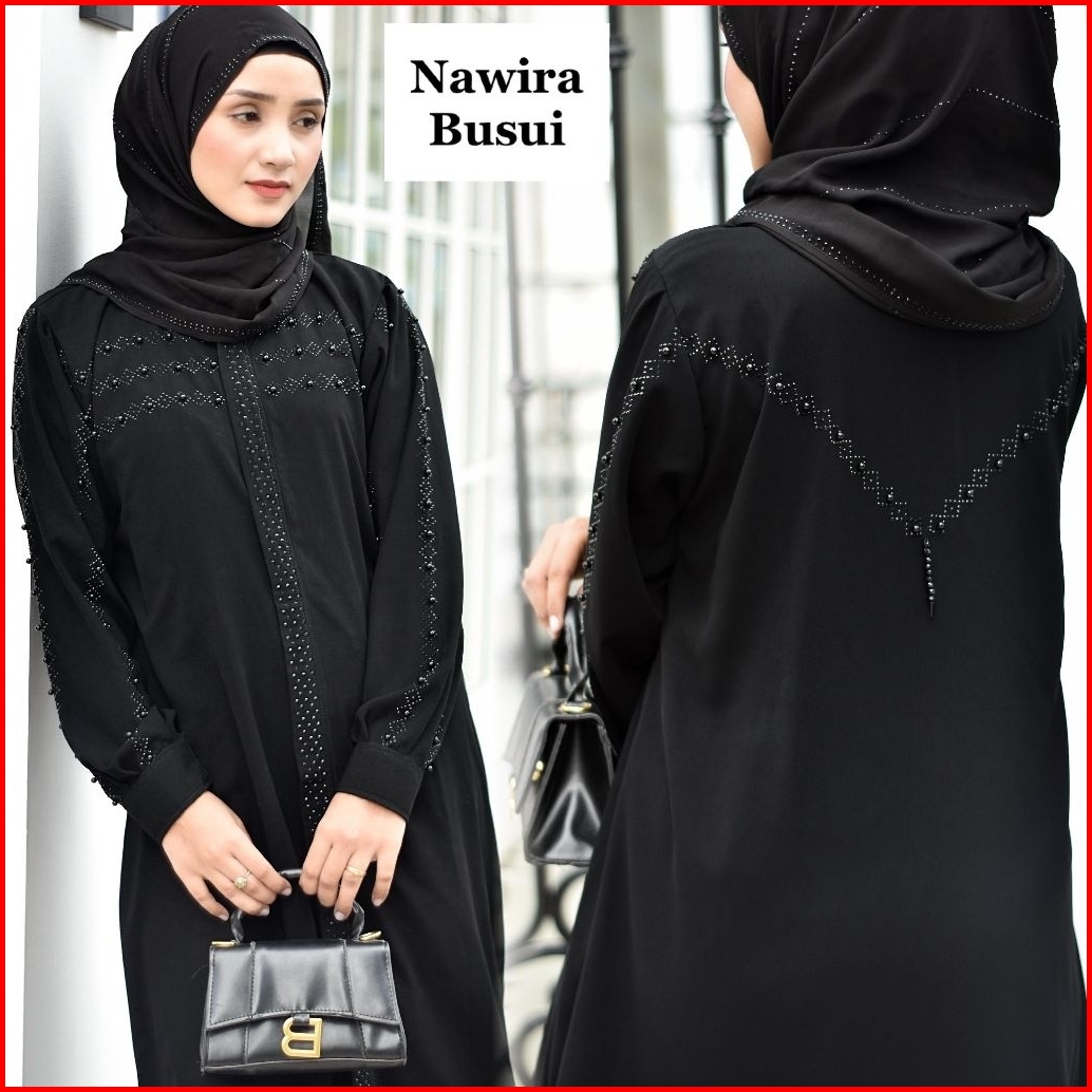 Abaya Gamis Hitam Nawira Dubai Hitam Turky Gamis Busana Muslim Fashion Wanita Kombinasi Motif