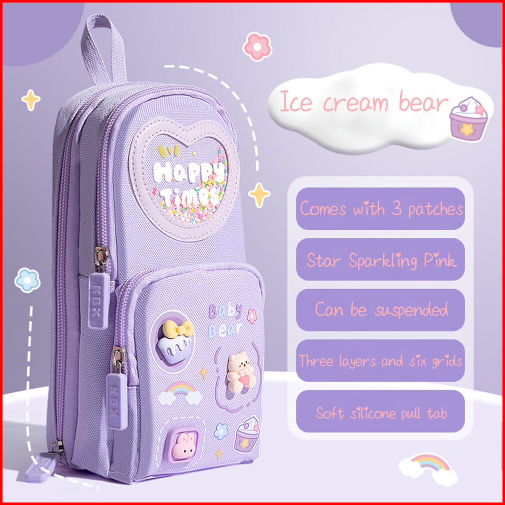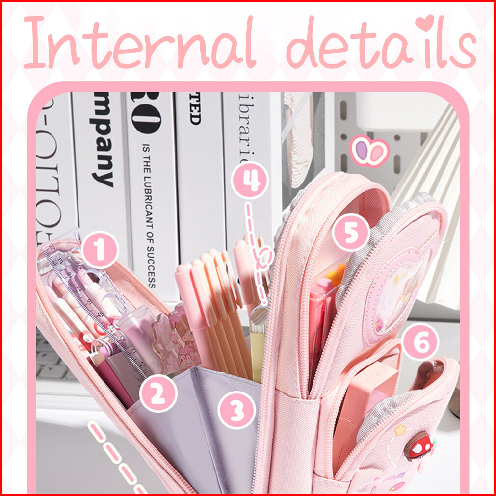 Tempat Pensil Kota 3d Anak Perempuan Lucu Besar Kotak Pensil Kanvas 6 Ruang Pencil Box Tas Pencil Case